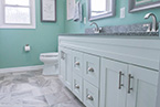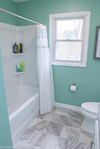 Most of the drywall and flooring was deteriorating. We pulled up the floors, replaced the drywall and complimented this hallway master bath with new porcelain tile with a brick pattern and a Sterling Koehler four-piece shower.