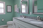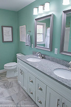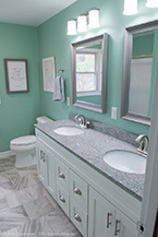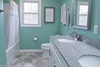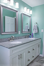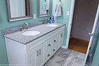 The flooring is accented by a shaker style vanity cabinet with a granite counter top with brushed nickel Delta faucets. No matter the size, no matter the condition, Mr. Fix It is here to help you and your family remodel your bathroom or kitchen. Call us today and see our only job portfolio at http://www.mrfixithomes.com