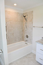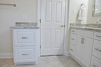 In the master bath, we removed the large garden tub and started to work on the improvements. We remove an access door from the bedroom to extend the vanity from a 48' single bowl to a 96' double bowl. Working with the homeowner, we crafted 8' of custom cabinetry to replace the old cabinets.