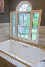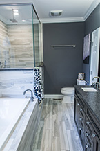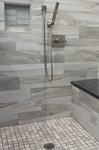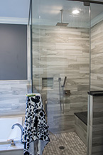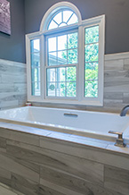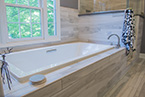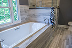 Here's one of our recent favorites. This bathroom remodel replaced a jacuzzi with a 72xc26 drop-in tub and custom-tiled shower all accented by Tiger Wood plank tile for an elegant european finish.