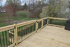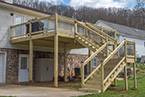We finished the job with premium 5/4" x 6" and 16" deck flooring with 1" aluminum black balusters with a 2x4 top rail. There are also two sets of steps with a 4'x4' landing. Another job well-done just in time for those Summer sunsets as this deck looks westward from Stuffle Heights in Kingsport.
