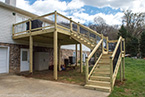 We were excited to work with the owners to reimagine this new deck and enlarging it to 22' x 16' construction with 20" x 20" post footings. We installed 6" x 6" post footings and a 2" x 10' floor system on a joist on a 16" center with joist hangers. Now that's a lot, but what it means - it's sturdy and will last a long, long time.