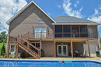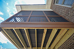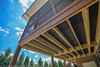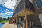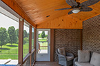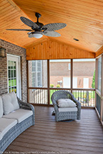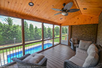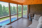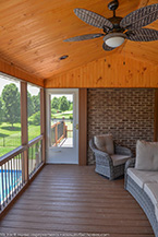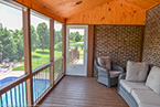 The floor inside the screen room is Trexx decking with Cox Dry-Treated framing and stained new walls. Our team constructed a stick framing for the shed roof and built a vaulted ceiling with tongue and groove stained 1"x8" pine for a greater sense of space.
