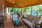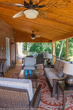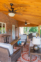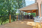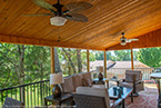 There's a great roof over part of the deck that serves as a warm patio. The framed 2x8 roof system has a 2x10 wall ledger set with 4x4 posts and 3.5"x10" beams over the posts. The roof itself has roof sheathing, felt, architectural singles with wall flashing and vinyl soffit and fascia for an exterior finish. We've even insulated the roofing with R-19 insulation and completed the interior finish with a cedar ceiling.
