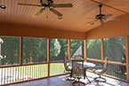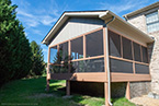This recent job in Kingsport expanded a 18'x12' room to a new dimension of 18'x18' Screen Room. 18’x12’to start. The cedar accents include a 4x4 support post, 2x10 beams for room trusses with a 6/12 pitch. We used Architectural shingles to match the homes existing roof and added 3" knee walls with cedar framing and aluminum black ballasters for east viewing.